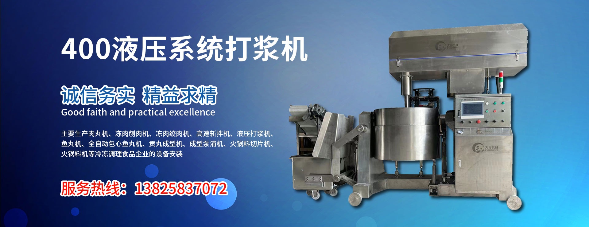 主要生產(chǎn)肉丸機,凍肉刨肉機,凍肉絞肉機,高速斬拌機,液壓打漿機,魚丸機,全自動包心魚丸機,貢丸成型機,成型泵浦機,火鍋料切片機,火鍋料機MORE+